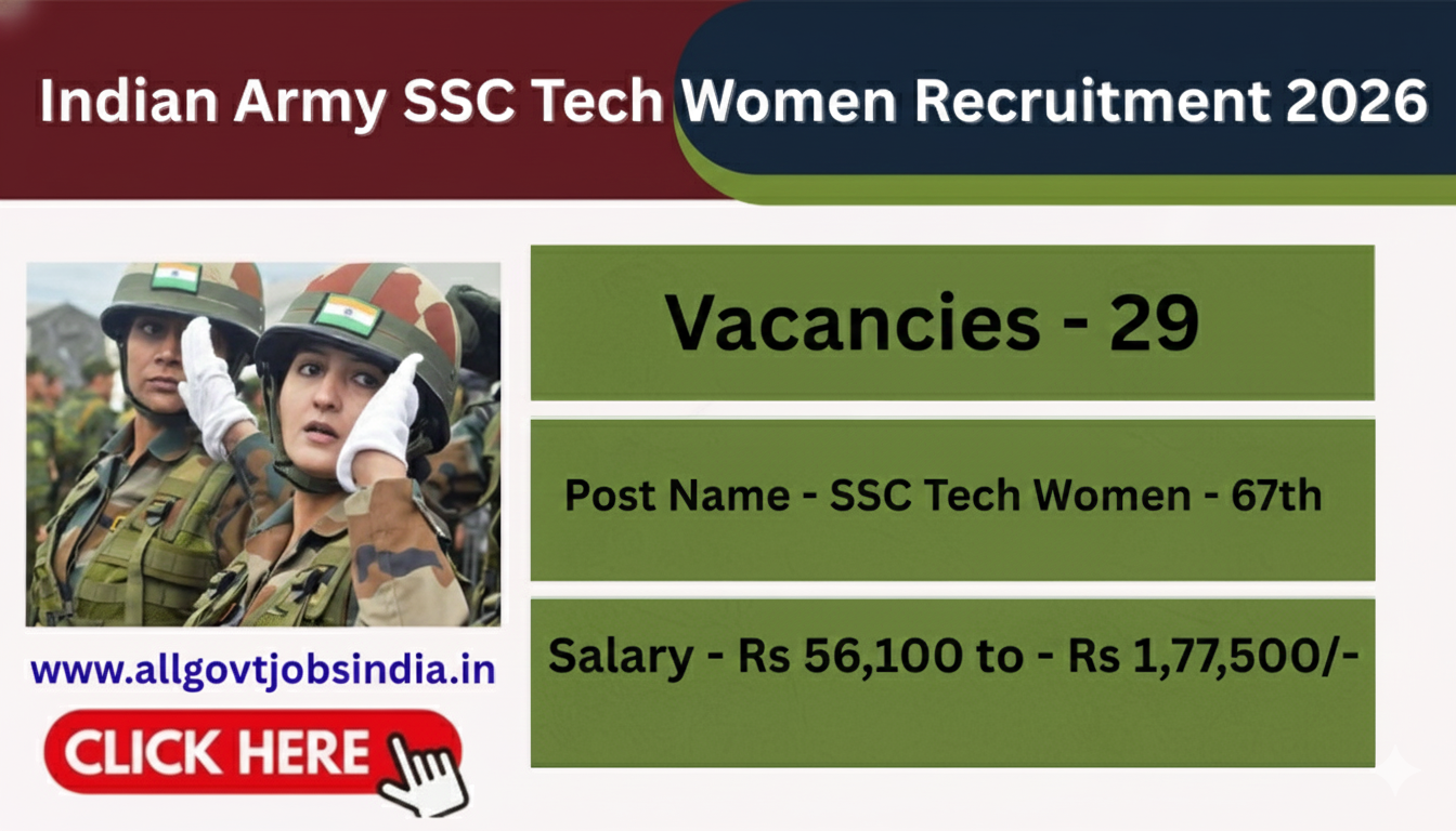 Indian Army SSC Tech Women Recruitment 2026 – Apply Online for 29 Posts – www.AllGotJobsIndia.in